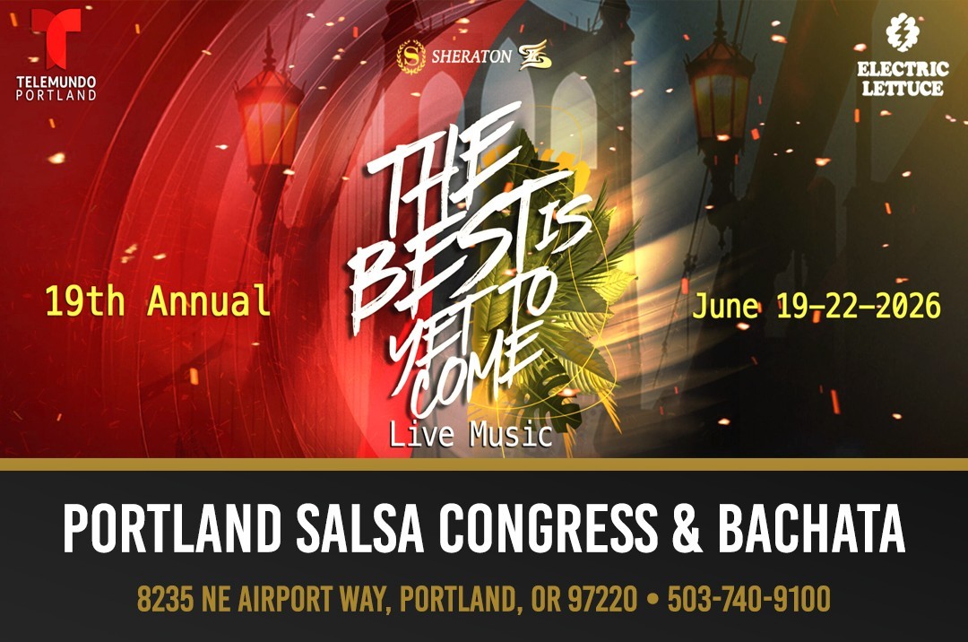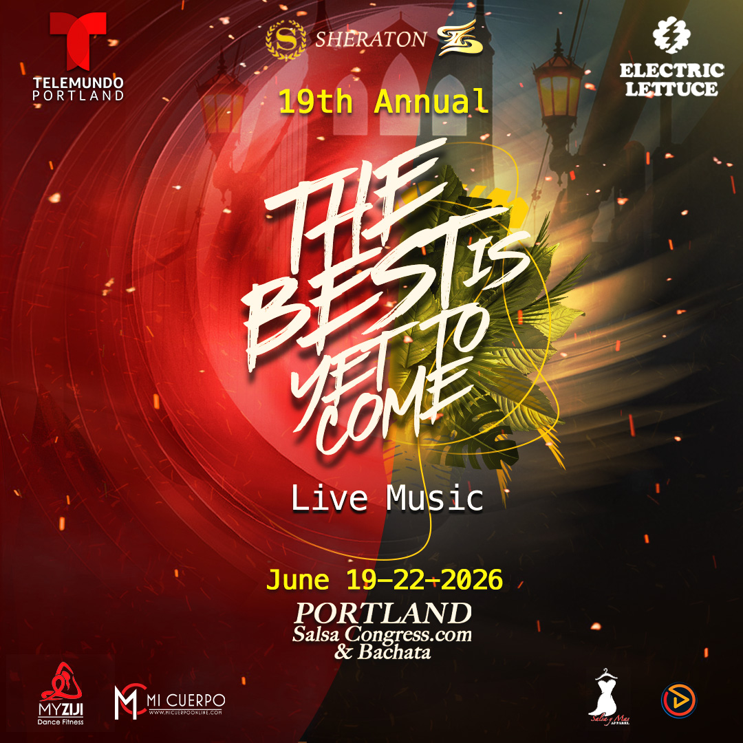 We are proud to announce the 19th Annual Portland Salsa & Bachata Congress celebration hosted at The Sheraton Airport Hotel, the event dates are from June 19-21-2026. This year the event will be even more bigger then before. We are bringing our exclusive line up from Cuba Alien Ramirez, Ace, Sergio Jasso & Lu, Sade & Beto, Jarek Hernandez all of them will be showing their dance talent and top of the line shows, we are also having outstanding live bands and our amazing DJ’s for live entertainment all weekend long.